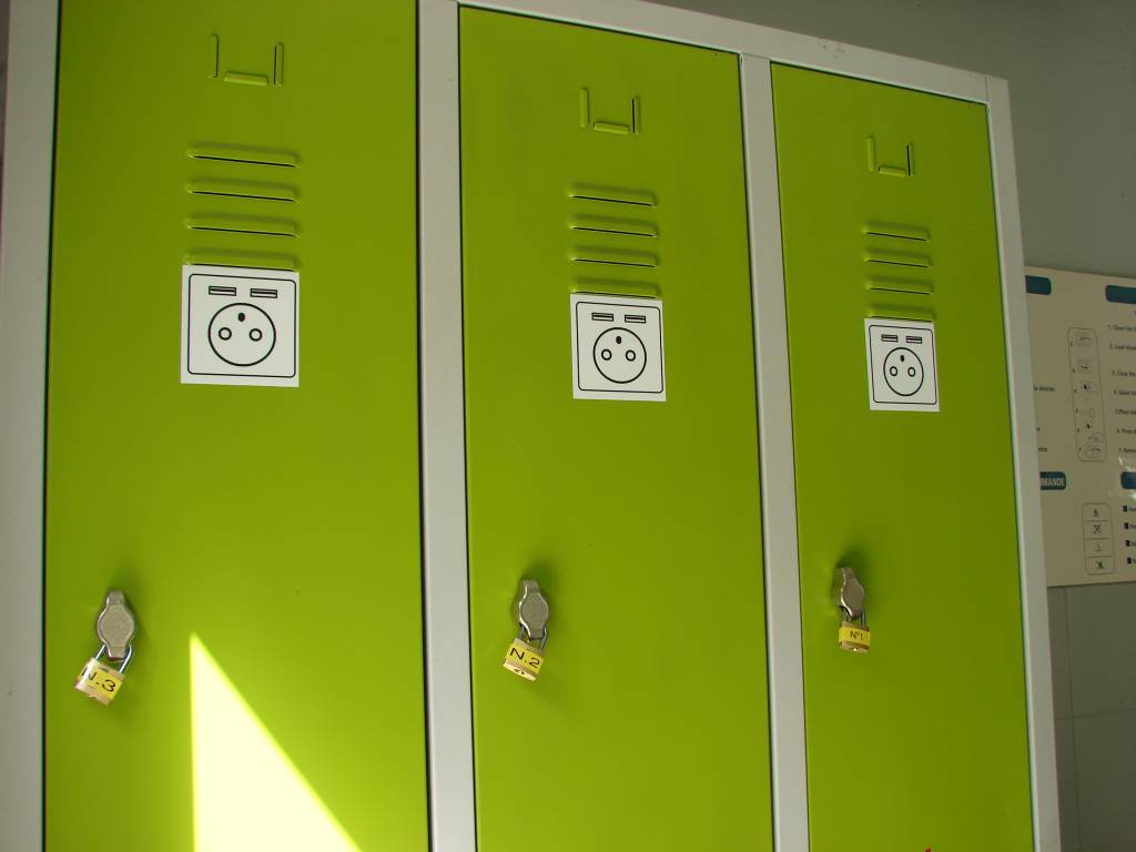 Des casiers avec prises électriques et prises USB sont à louer au prix de 2€.